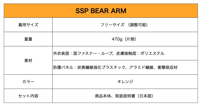 ② SSP BEAR ARM:製品サイズ、重量、素材