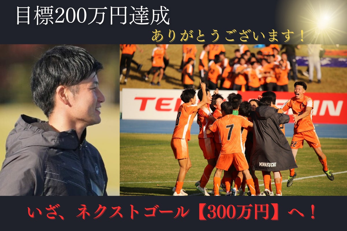 2026/01/13 07:31水口高校サッカー部!全国大会への挑戦を支えてくださった皆さまへクラウドファンディングが無事に終了いたしました。目標を大きく上回るご支援・応援を本当にありがとうございました!心より感謝を申し上げます。選手たちは全国の舞台で堂々と戦い、初戦では昨年度ベスト8の強豪・上田西を破り、2回戦では2008年度優勝校・広島皆実を3-1で撃破。29年ぶりの全国大会で、念願だった「3回戦進出」という目標を見事達成しました。選手たちのひたむきなプレーと笑顔に心から感動、その裏側には、皆さまのあたたかいご支援がありました。ご支援のおかげで、◎移動・宿泊・活動費の充実◎試合前後のコンディション維持すべて、選手にとって大きな力となりました。そして大会は、神村学園(鹿児島)の優勝で幕を閉じました。水口高校が3回戦でぶつかった神村学園が頂点に立ったことで、あの試合の重みと誇りも、より深く刻まれるものとなりました。王者に挑んだ経験が、次の挑戦へとつながっていきます。新チームは、すでに始動しています。来年また、あの舞台へ戻るべく、新たな挑戦が始まっています。これからの水口高校サッカー部にも、どうぞ温かい応援をお願いいたします。最後になりますが、このクラウドファンディングを通じて支えてくださったすべての皆さまへ、心からの感謝を申し上げます。そして、高校サッカーに関わるすべての選手と、それを支えるすべての人たちに、最大限のエールを。本当に、本当に、ありがとうございました!心からの感謝を込めて——水口高校サッカー部応援実行委員会 もっと見る