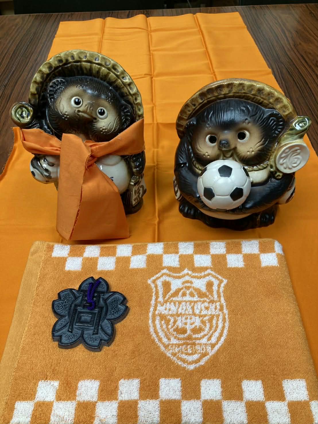 甲賀市の特産・信楽焼のサッカーボールたぬきが、