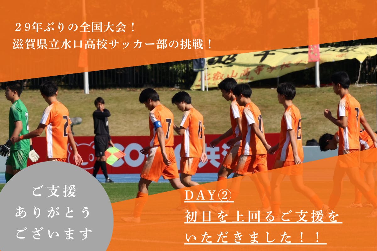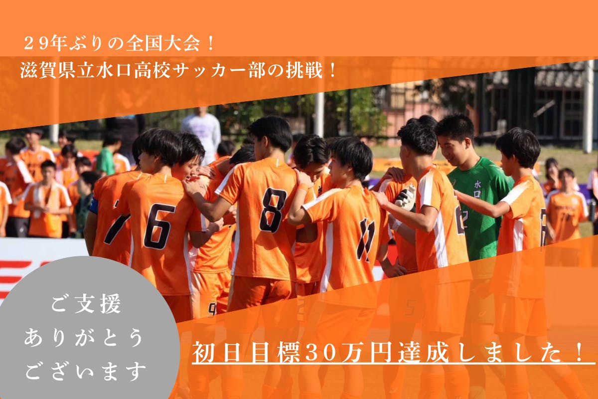 2025/12/06 21:20水口高校サッカー部応援クラウドファンディング、初日で目標金額30万円を突破することができました。ご支援・拡散・お気に入り登録してくださった皆さま、本当に本当にありがとうございます。OB・保護者・地域の皆様をはじめ、水口高校を愛する多くの方のアツい想いがギュッと詰まった初日でした。チームが全国の舞台に立つ喜び、それを“自分ごと”として応援してくださる皆さまの熱量に、水口の底力を感じました。そして次なる挑戦へ──私たちの次の目標は、12月12日(金)までに《200万円》の達成!選手たちが安心して思いきりプレーできるように。私たちができる応援は【支援】というカタチで届けること。まだまだ道の途中。引き続き、あたたかい応援とシェアのご協力をよろしくお願いいたします!応援してくださる皆様へ心からの感謝を込めて——水口高校サッカー部応援実行委員会 もっと見る