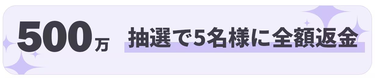 皆様の熱いご支援のおかげで、本プロジェクトの支援総額は5,000,000円を突破しましたので、支援者様の中から抽選で5名様に全額返金いたします!