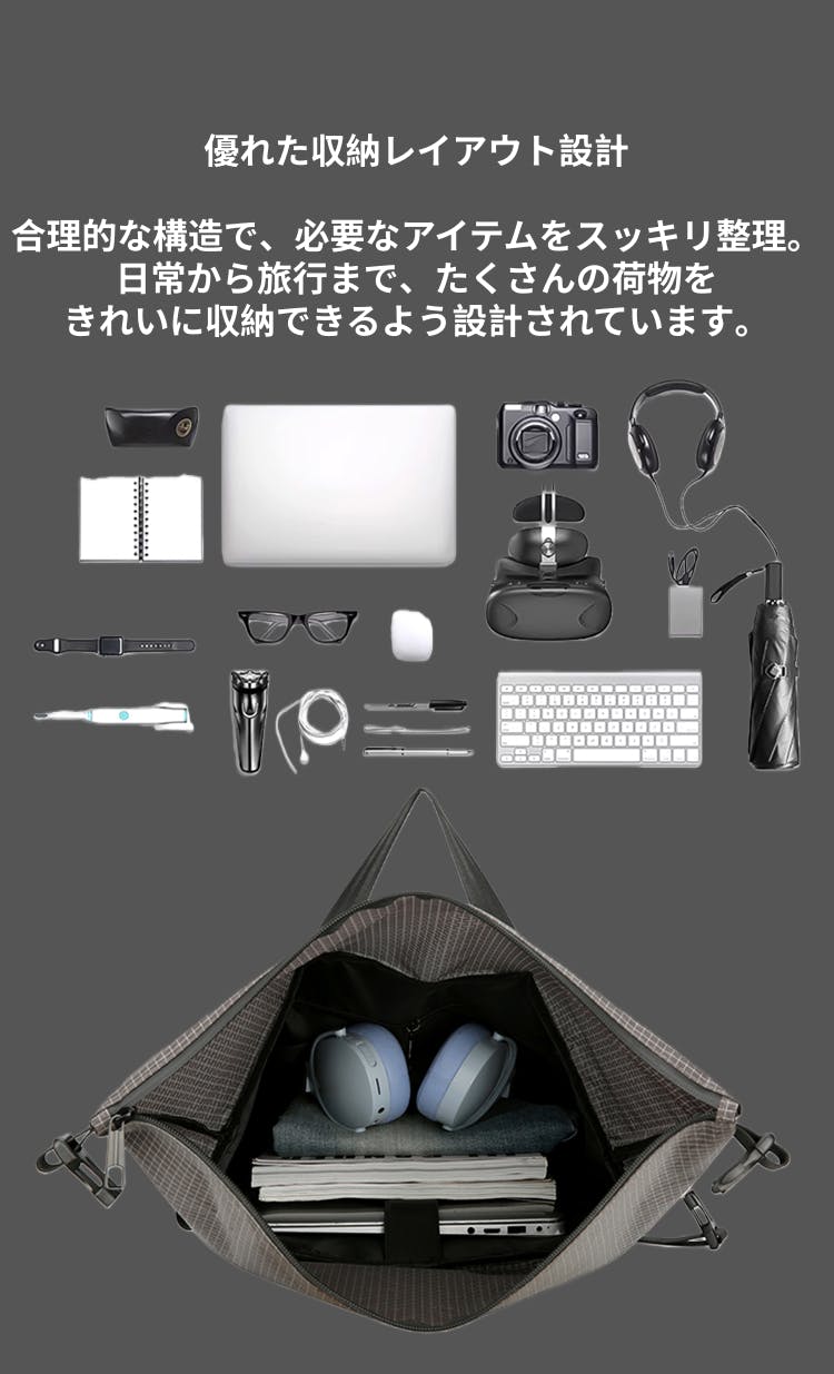 衣類・PC・ガジェット・お弁当・書類など…「今日は荷物が多い日」でも余裕の収納力。