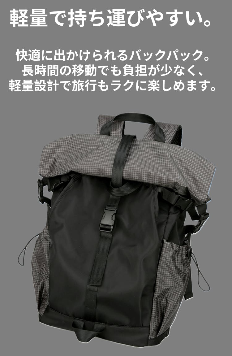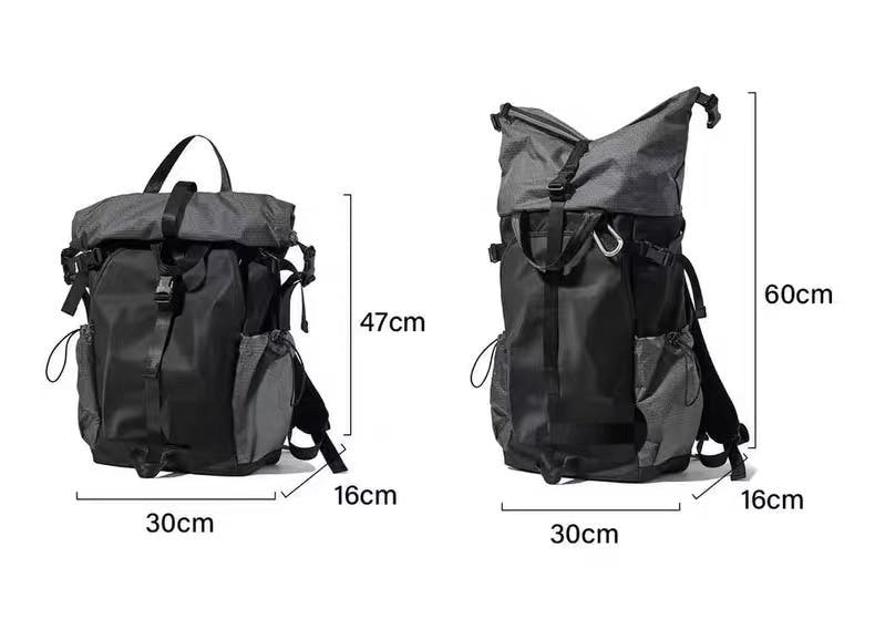 拡張できるロールトップ・多機能バックパック