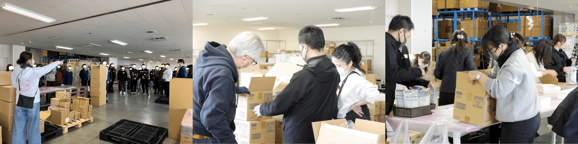 4月下旬 賛同企業から寄付された商品を梱包開始