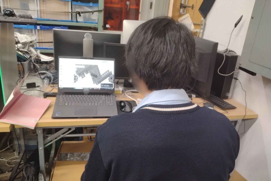ロボットの設計は、主にCADを用いて行っています。各々が頭に描くロボットの案を話し合い、データとして落とし込んでいきます。メンターの方の力も借りながら、なるべく詳細に作成します。その過程では、自分の意見を相手に理解してもらおうと、非常に積極的な話し合いがされていた点が印象的でした。