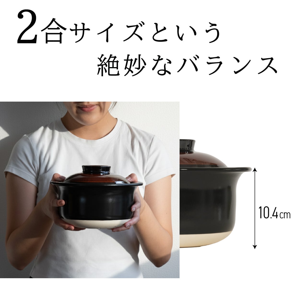 土鍋炊飯の美味しさを 存分に楽しんでいただくため、 最も汎用性の高い 2合サイズを
