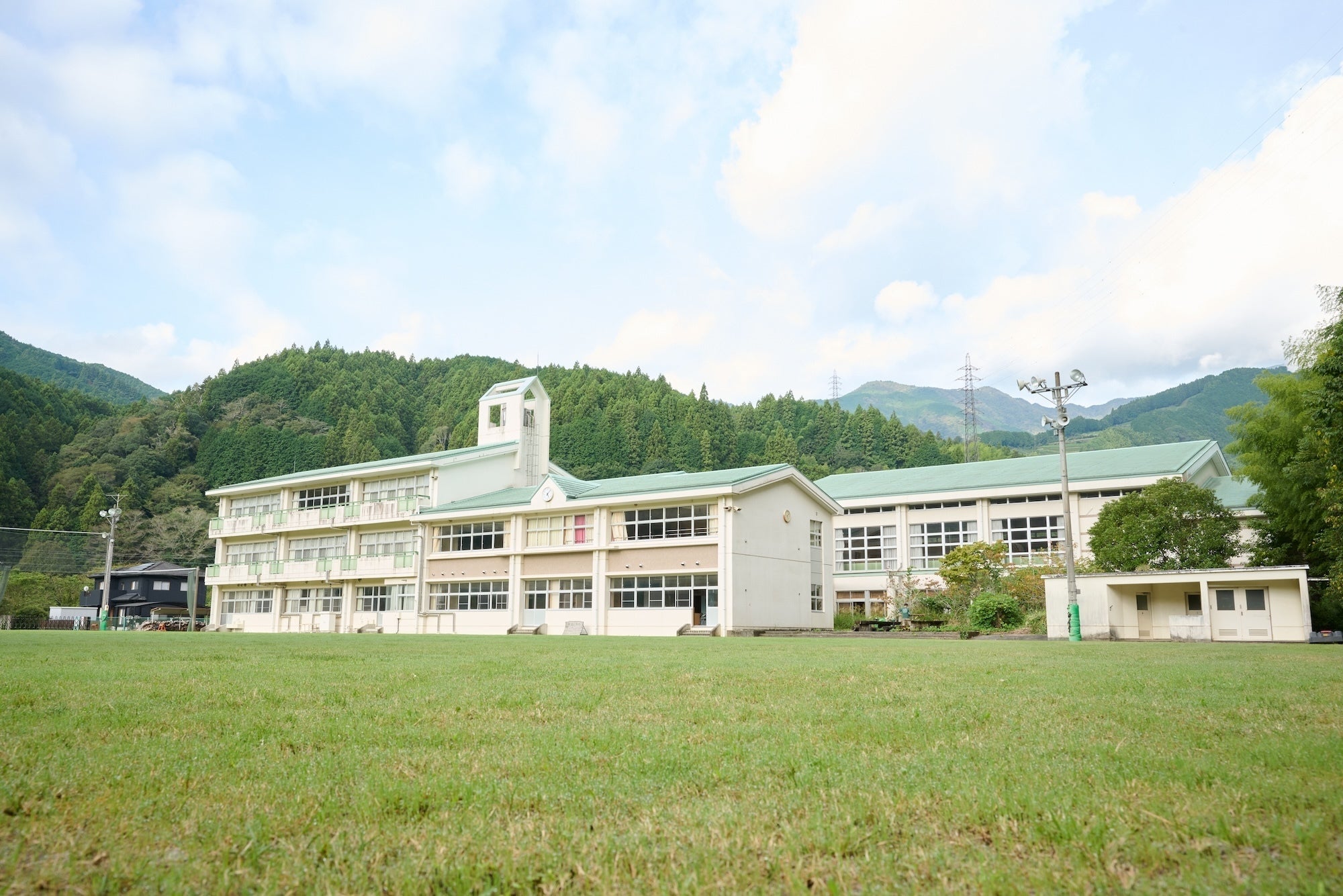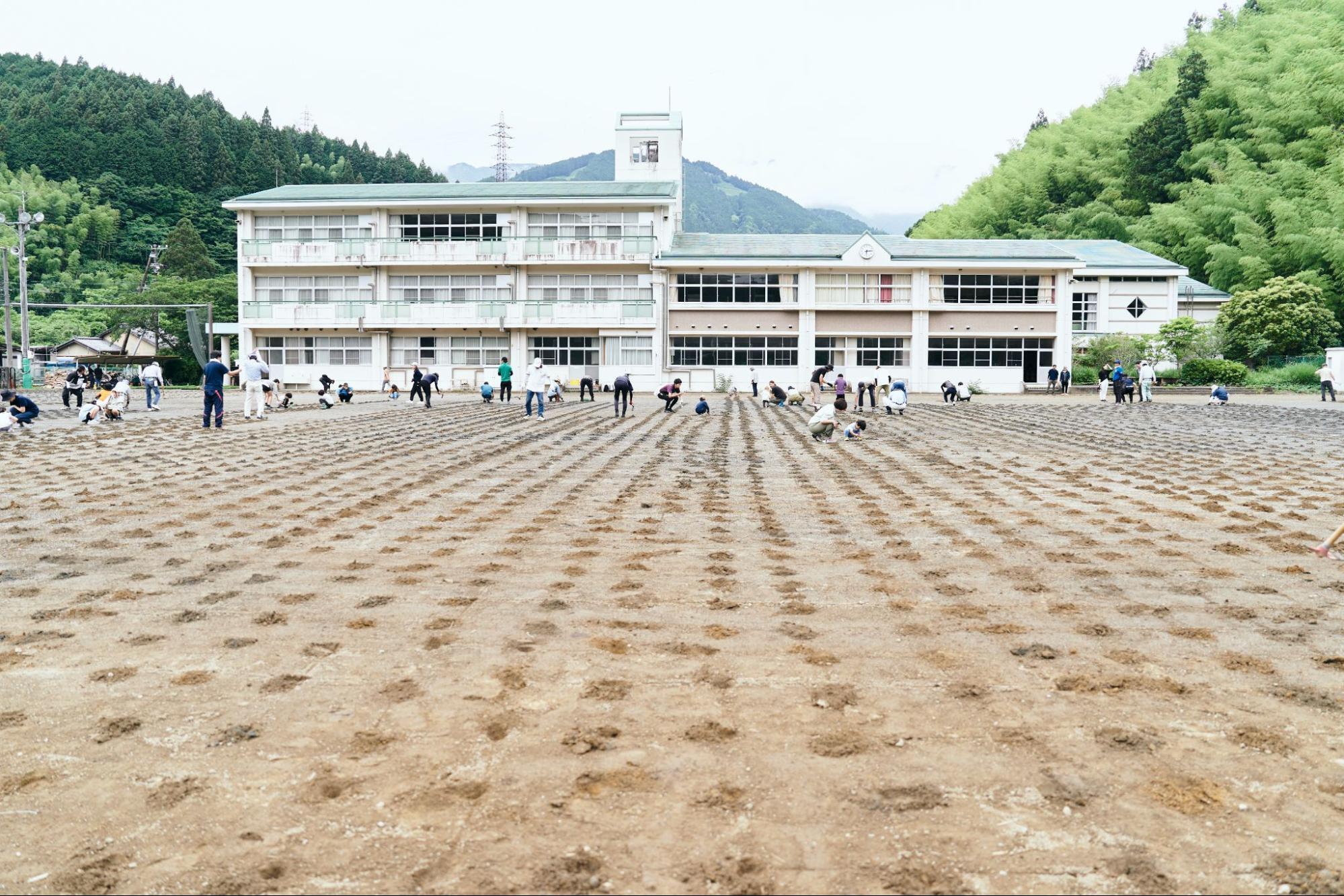 このプライベートなスペースから天然芝グラウンド越しに生まれ変わっていく旧清水西河内小学校を眺めると、場所を初めて訪れる人、毎年来てくれる人、近隣にお住まいの人、この小学校を卒業した人、それぞれが心静かにどのような景色を見てくれるでしょうか?