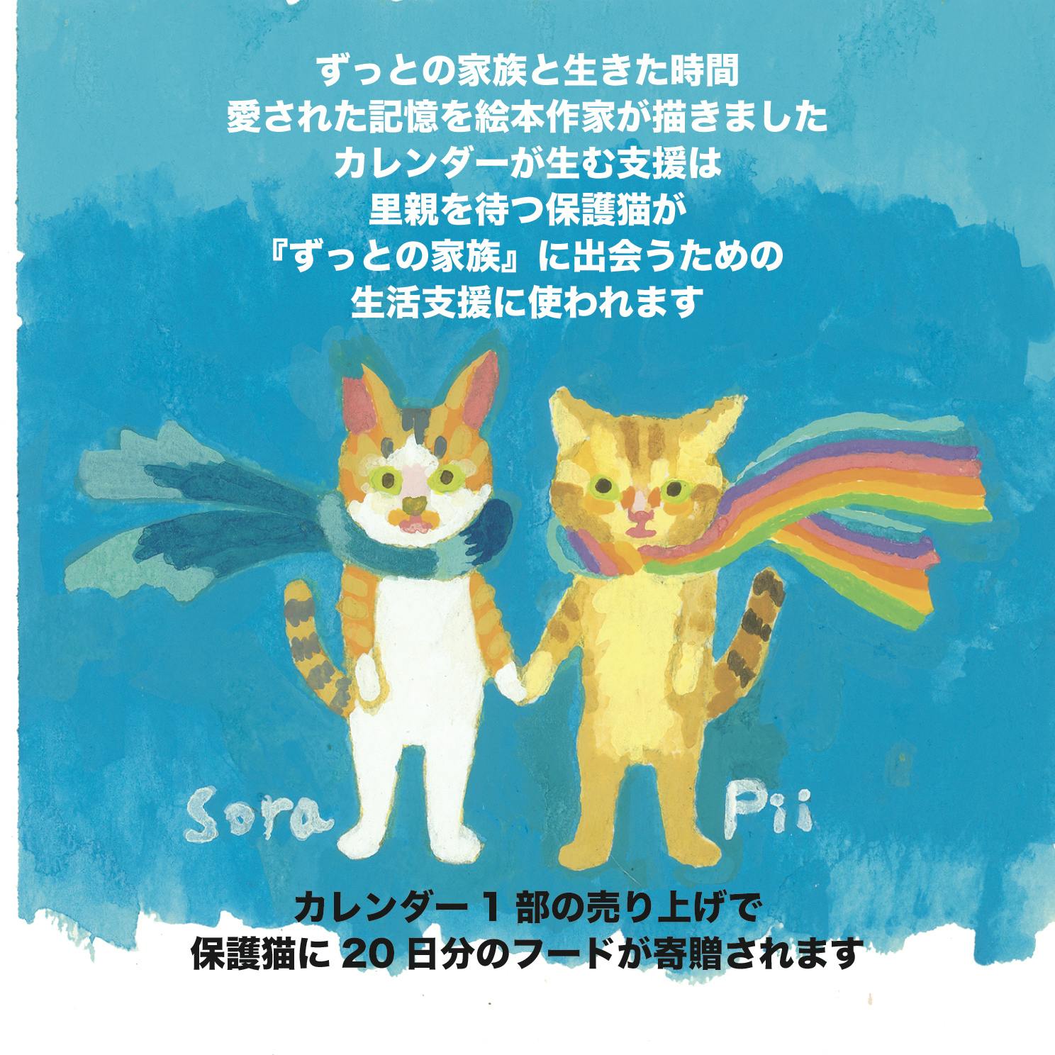 カレンダー1部のお買い上げで保護猫に20日分のフード(充分な栄養のあるご飯)が寄贈されます。