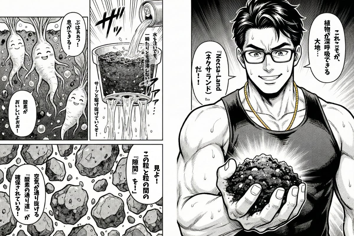 最大の特徴は、圧倒的な「乾きやすさ」です。水はけを極限まで良くすることで、根っこが呼吸できる環境を保ち、水のやりすぎによる失敗を防ぎます。