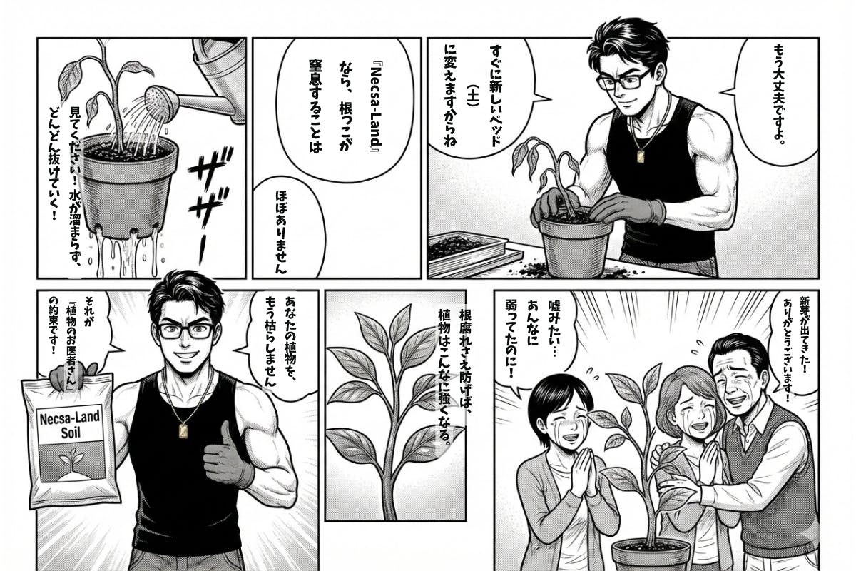 実は、植物が枯れる原因の多くは、水のやりすぎによる「根腐れ」です。「水をあげるタイミングがわからない」「乾き切る前に水をあげてしまい、根がふやけてダメになる」そんな悩みを解決するために、私は3年の歳月をかけて、この土を開発しました。