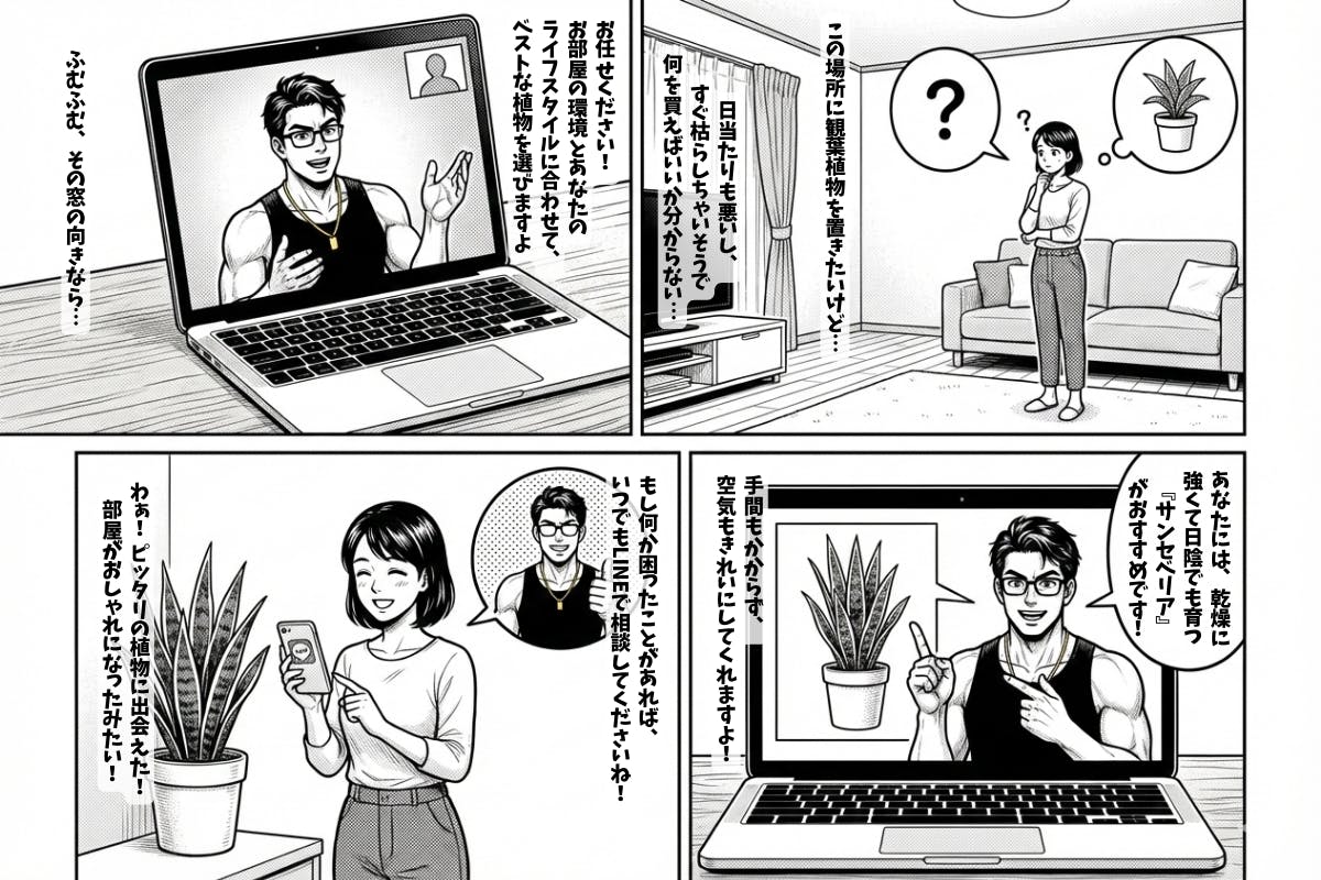 ・相談内容: LINEにて植物の健康状態や育て方などの不安をご相談いただけます。
