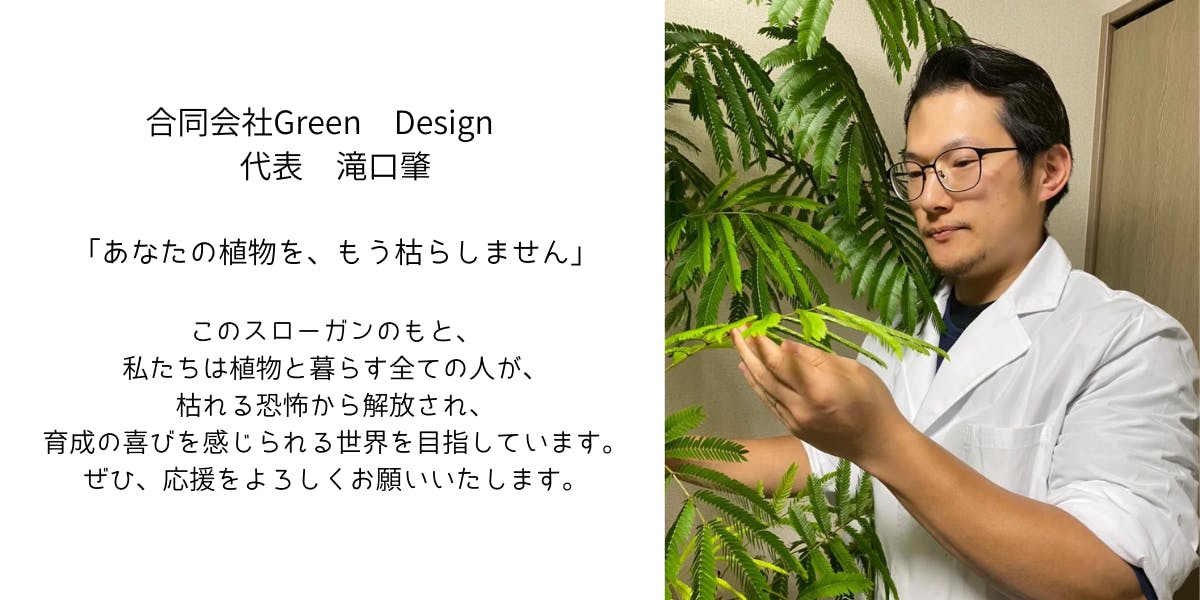 はじめまして。「植物のお医者さん」として活動している、合同会社Green Design代表の滝口肇です。「大切にしていた植物を、気づいたら枯らしてしまった」……そんな経験はありませんか?