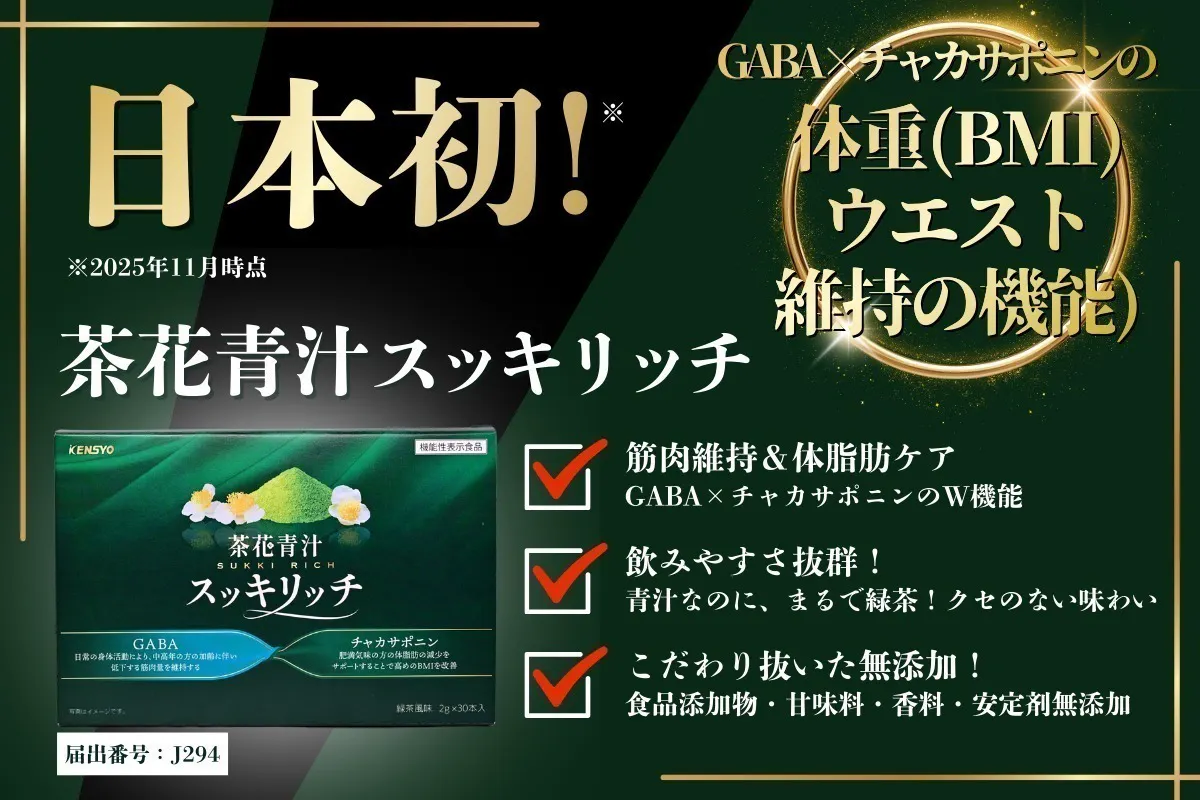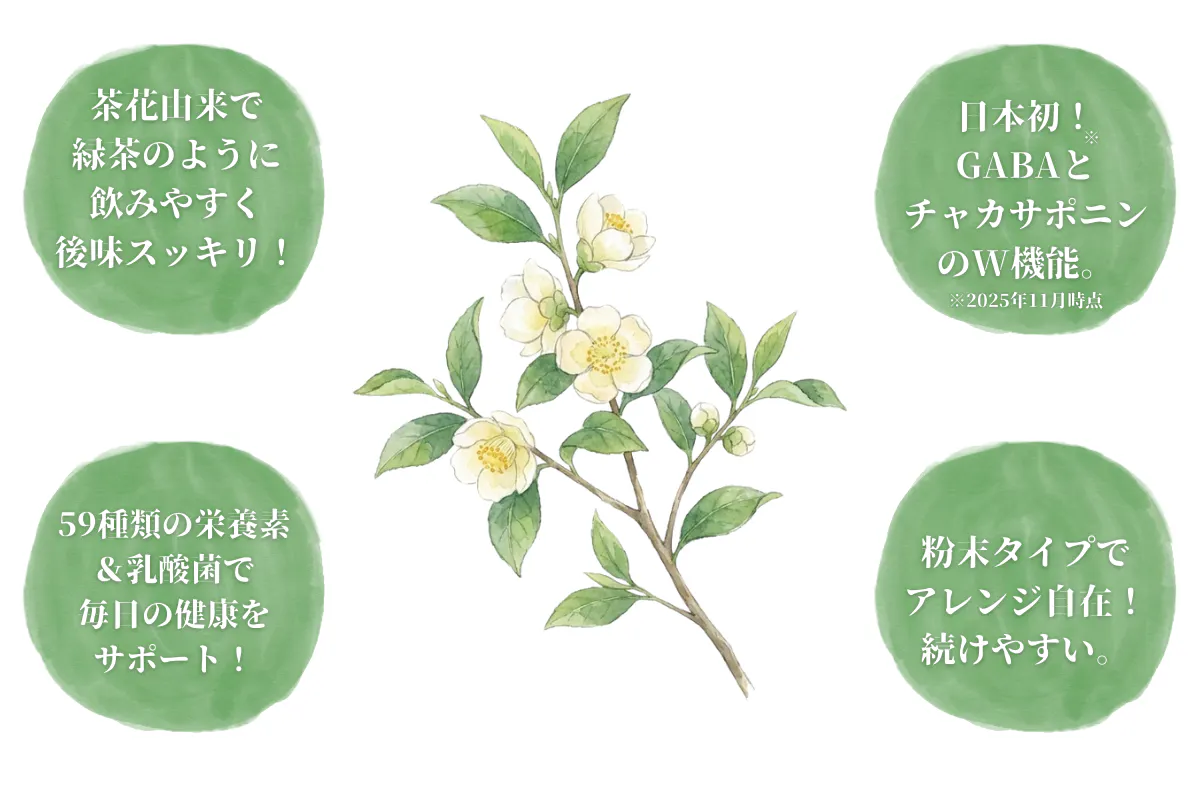 さらに、59種類の栄養素をもつユーグレナ、ビタミン・ミネラルが豊富なことで世界でも注目されるモリンガ、腸にうれしい乳酸菌も配合し、ダイエットとリバウンド対策、日々の栄養ケアまで支える“新しい青汁体験”を目指して「茶花青汁スッキリッチ」を開発しました。