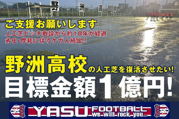 しかし、人工芝ピッチ完成から18年。摩耗により怪我が多発し、公式戦や地域イベントの開催も減少。「野洲高校でサッカーがしたい」という子どもたちの夢が、今、失われつつあります。