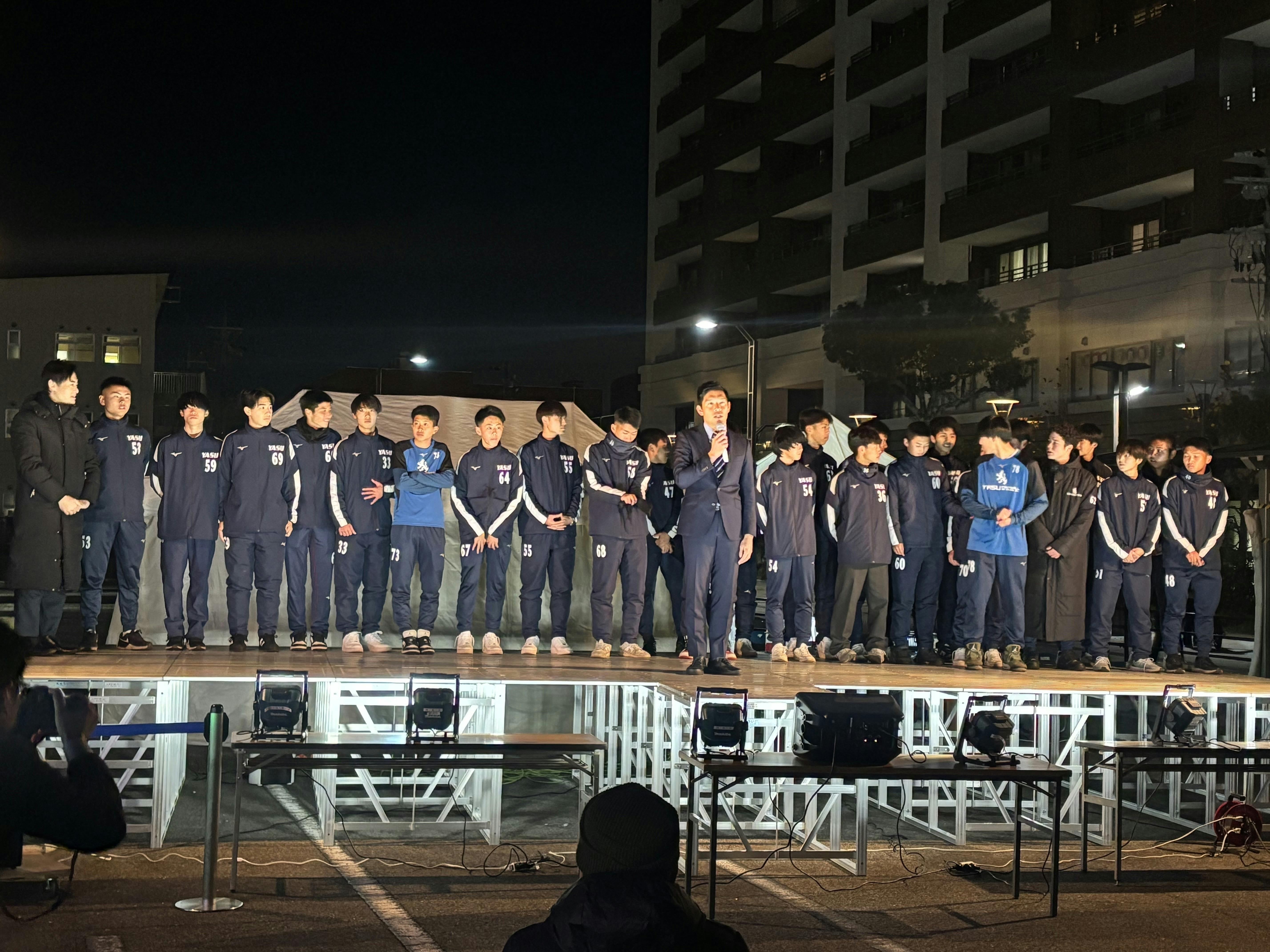 野洲高校の人工芝張替のクラファンプロジェクトがいよいよスタートしました!初日からたくさんのご支援をいただき本当にありがとうございます。公開初日の昨日は、JR野洲駅前で開催された『イルミネーションパークYASU』のクリスマスナイトでサッカー部顧問とサッカー部員がクラファンスタートのご挨拶をさせていただきました。櫻本野洲市長からも激励をいただけ大変ありがとうございました。これから2月末までの長い期間ですが目標達成出来るようみんなの力を出し合ってガンバリます!引き続き応援いただけますようよろしくお願い致します。また、ぜひJR野洲駅前の『イルミネーションパークYASU』も見に来てくださいね〜