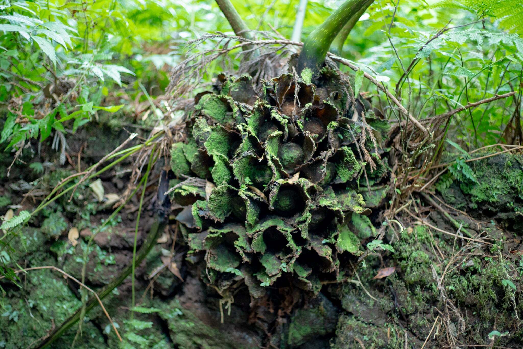 ヘゴの群生エリアは、奇跡的に大きな被害を免れました。