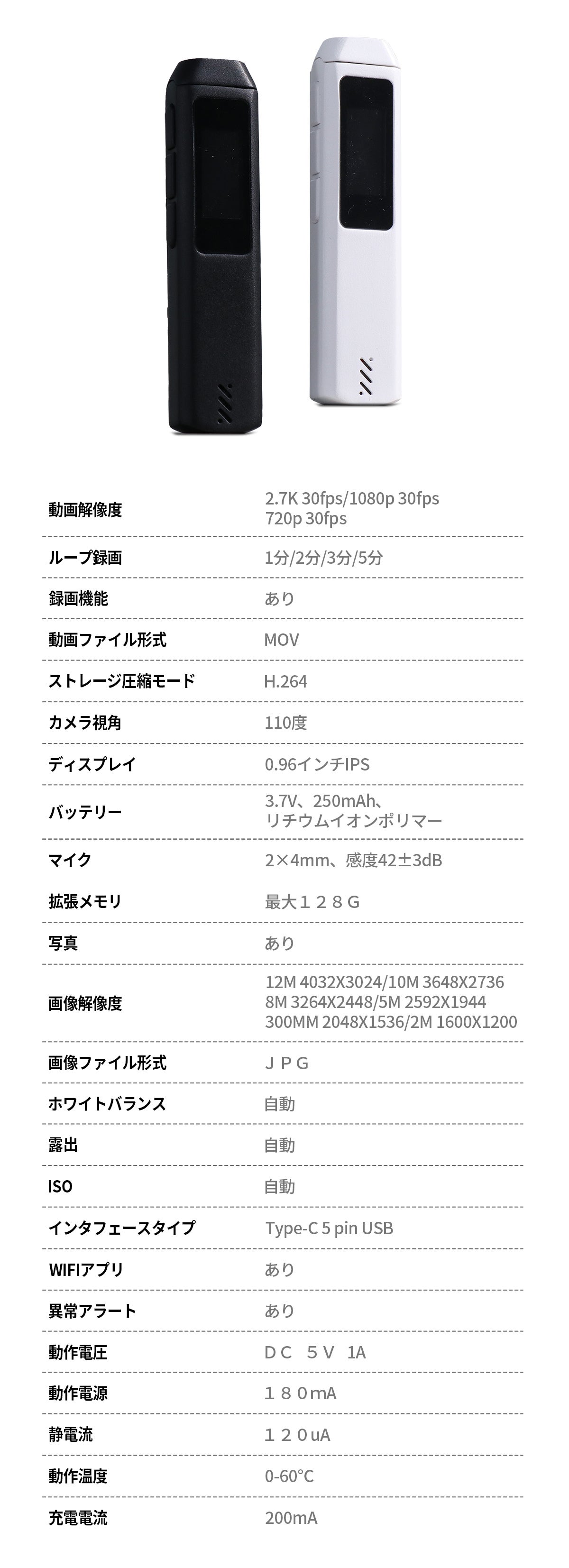最大2.7Kの解像度で30fpsの動画を録画できます、110 °の超広角レンズにより、広い範囲を一望できる映像を作成できます。従来のウェアラブルカメラでは周辺の細節がボケがちだったり、暗所で画質が劣化したりしましたが、S112は自動露出調整とISO制御機能により、それらの課題を解決しました。