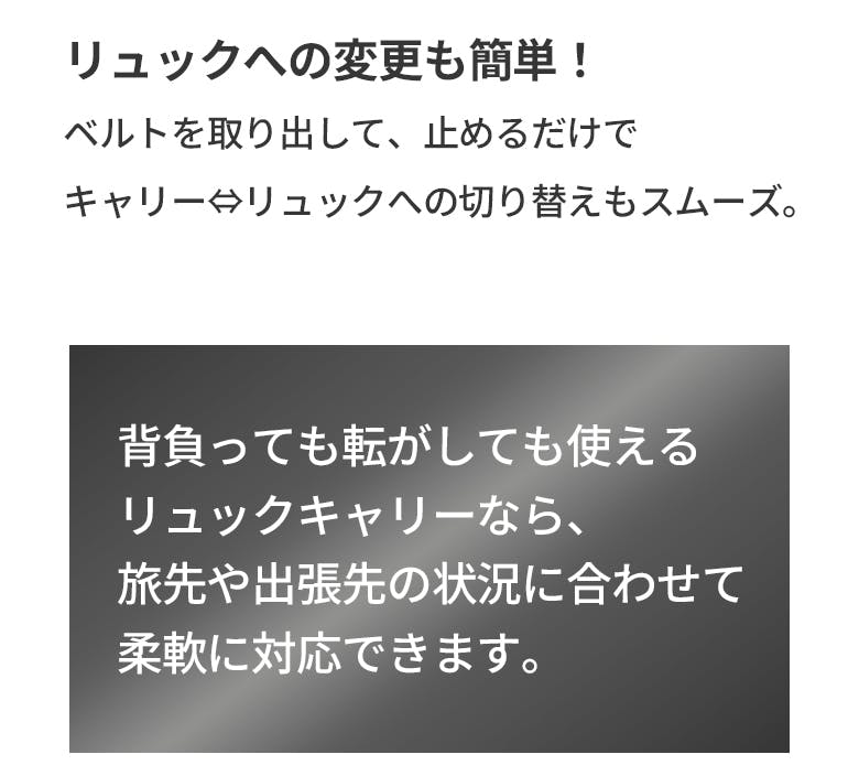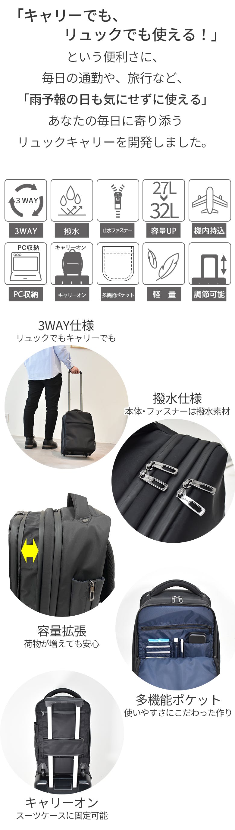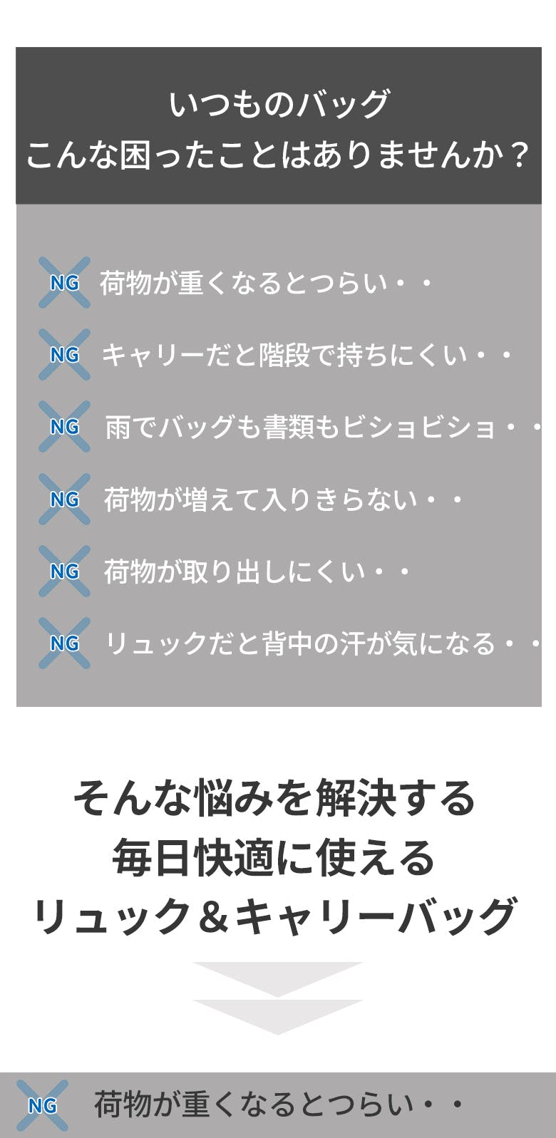 リュックにもなるキャリケースを開発し始めて第5作となるリュックキャリーです。