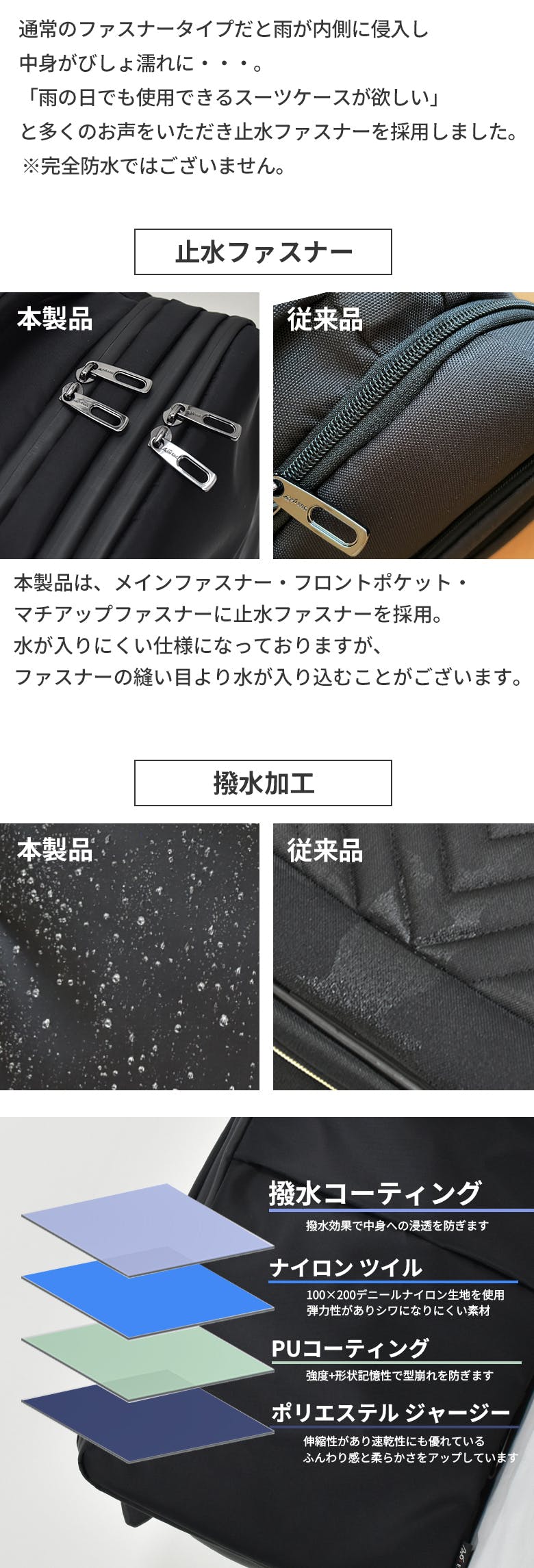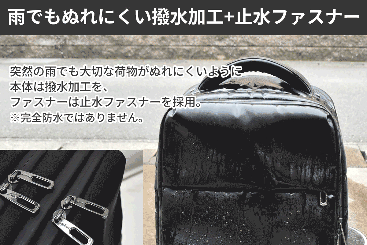 A:いいえ、リュックキャリー自体は完全防水ではありませんが、使用している本体素材は撥水加工をしております。また永久撥水加工ではありませんので自然に効果が薄れることをご了承ください。