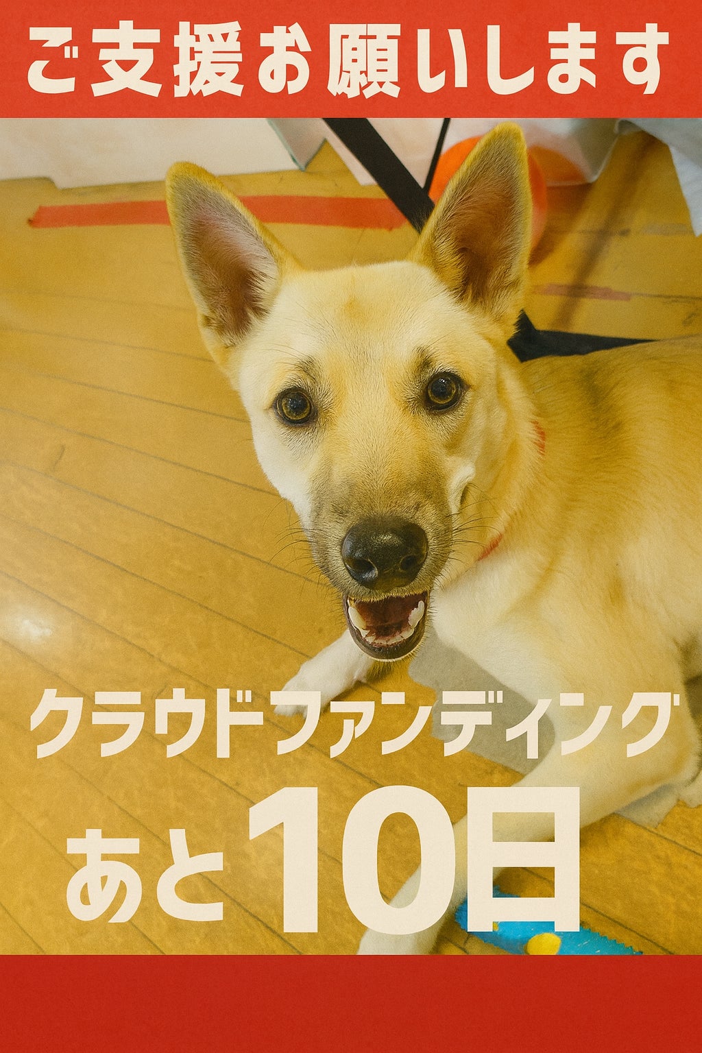 クラウドファンディング終了まであと10日! サクさんも平日は訓練所に通い、頑張っています。月曜日にお迎えが来ると少し寂しそうな顔をしますが、可愛い我が子を送り出し、職員もそれぞれ本来の仕事に励んでいます。 引き続き、ご支援や情報の拡散にご協力よろしくお願いします!