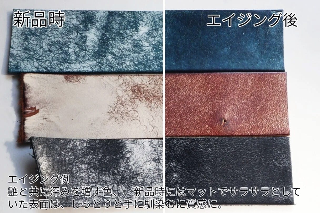 日々変化する財布の表情、唯一無二のエイジング(経年変化)をお楽しみいただけます。