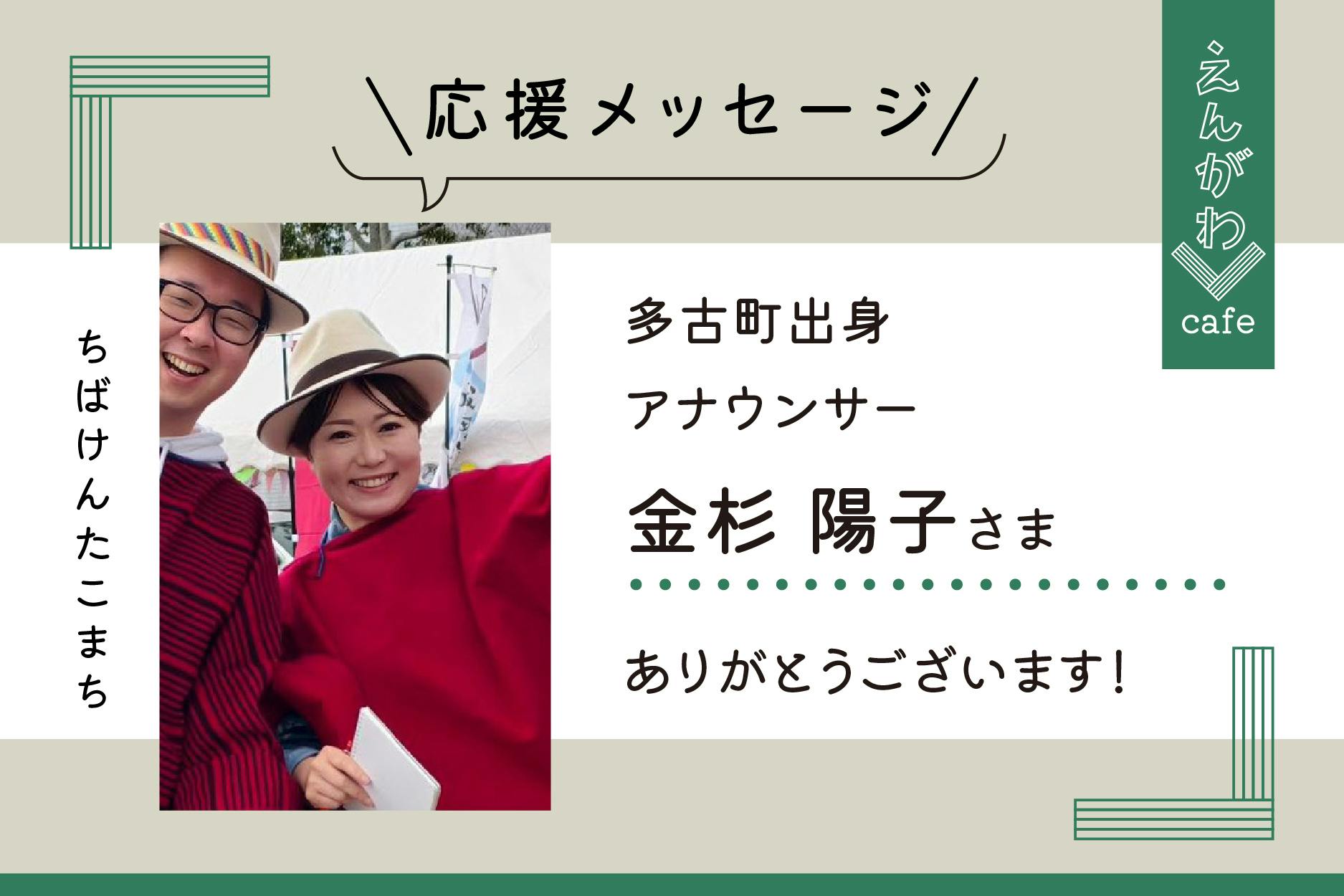 2026/03/16 09:25皆さま、いつも温かい応援ありがとうございます!この度、多古町内のイベントで司会進行をしてくださっている多古町出身のアナウンサー【金杉陽子】さんからえんがわカフェプロジェクトに応援メッセージをいただきましたのでご紹介いたします!ーーーーーーーーーーーーーー大好きなふるさと多古町に、あたたかな空間「えんがわカフェ」がオープンすると伺い、ぜひ応援させて頂きたいと思いました。えんがわカフェのオープン予定地、旧吉岡青果店さんは、私が多古中に通っていた頃に良く前を通っていた場所で、いつも賑わっていた記憶があります。あの頃のように、あの場所で、懐かしい笑顔や新しい賑わいが生まれるのかなぁと思うと、とても嬉しい気持ちでいっぱいになります。そして多古町のために、町民の皆さんのためにと、いつも素晴らしいイベントを作り上げてくださっている協力隊の皆さん。そんな皆さんが作ってくださる「えんがわカフェ」がたくさんの皆さんの居場所になるよう応援しています。ーーーーーーーーーーーーーー金杉さんありがとうございます!直近に開催されたラテンミュージックフェスタinTAKOではえんがわメンバーの加藤と一緒にイベントMCをしてとても楽しい一日を創ってくださいました!思い出にある賑わいを新しい形でつくっていきます!皆さまも引き続きご支援いただけたら嬉しいです!今後も進捗を発信していきますのでInstagram共々よろしくおねがいします!えんがわカフェ加藤唯斗、小倉真紀、笠川和憲、北條将徳 もっと見る