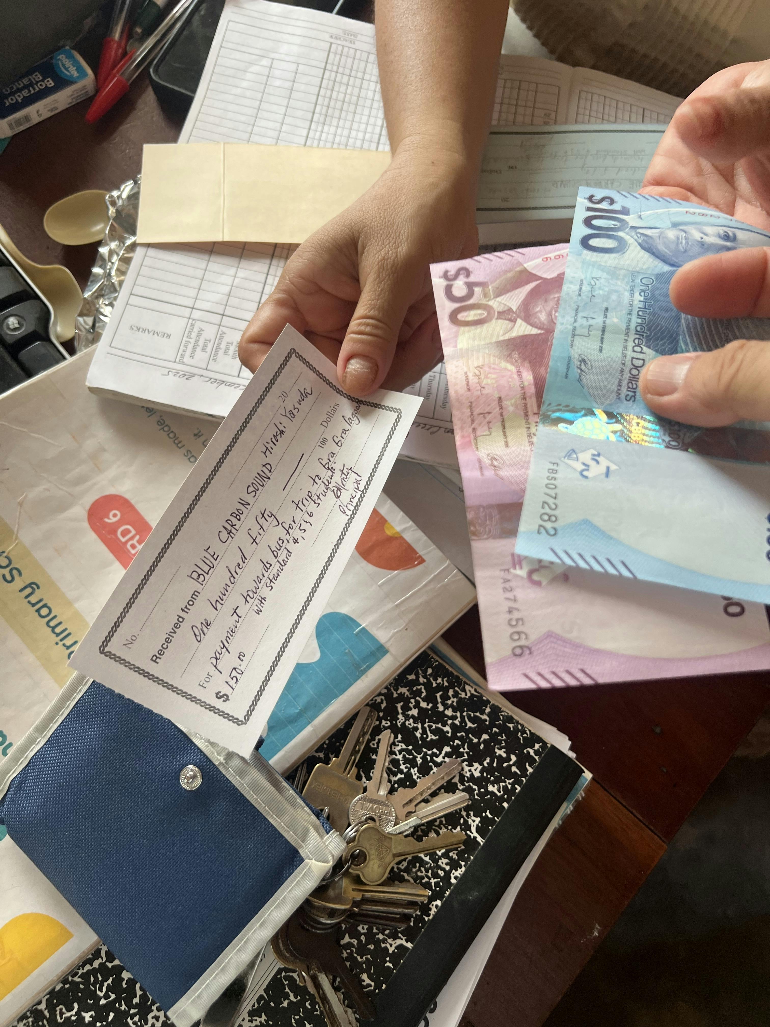 (写真は校長室でバス代を現金現金で支払っているところ)