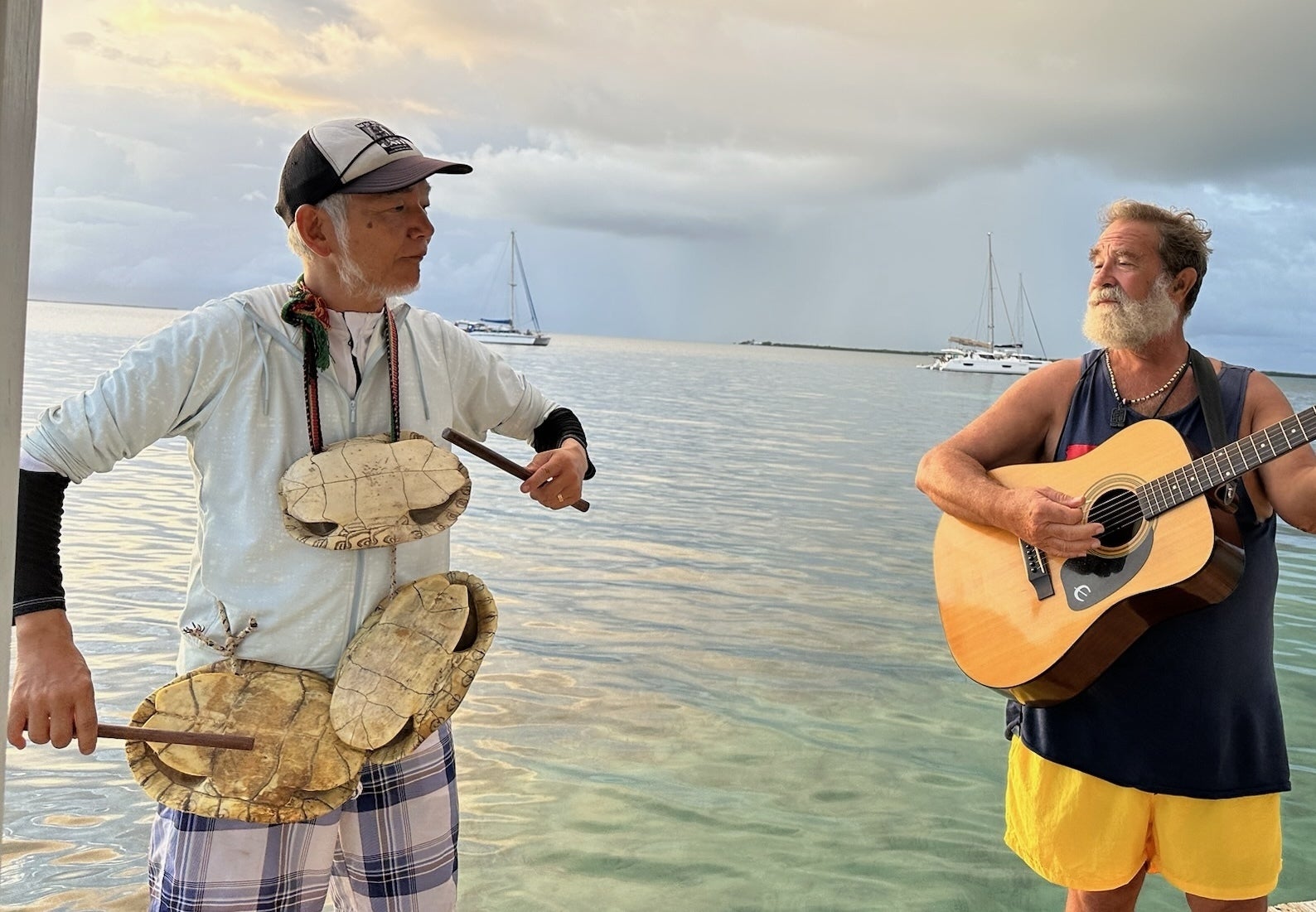 2025/12/20 21:04スタンクリークのSouth Water Caysで日光写真撮影とマングローブの音響テストの合間にゲイリーとセッション!絶景の夕日を浴びながら亀の甲羅のタイコとギターとトランペットでジャムっていたら、女子大生が飛び入りで見事なコーラスを展開してくれました。海洋学専攻の勉強疲れで音楽に飢えていたと言いながらタイコも叩いてくれて楽しいひと時でした。 もっと見る