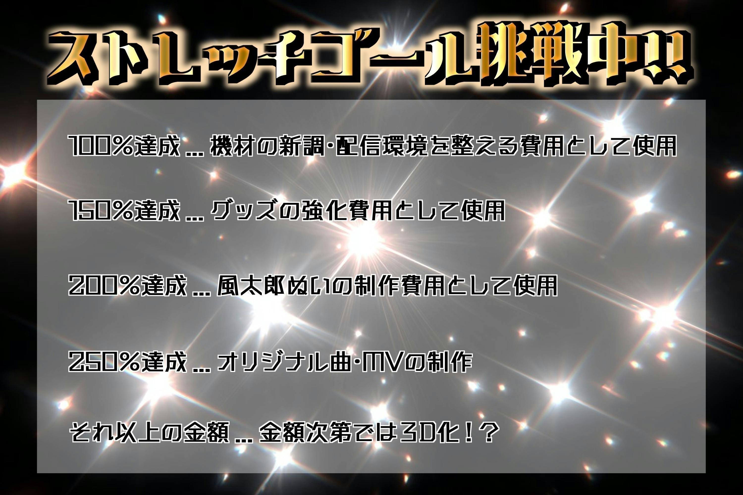 ・デジタル手書きメッセージ ・デジタルサイン入1枚イラスト ・クラファン限定アクリルスタンド(10cm) ▼デジタル手書きメッセージ・デジタルサイン入り1枚イラストについて▼ 注意事項:支援時、必ず備考欄に掲載を希望されるお名前をご記入ください メッセージとイラストの受け渡しについては プロジェクト終了後にお送りするメールをご確認ください。 風太郎直筆!デジタル手書きメッセージとサイン入りイラスト! それからクラファン用にデザインした アクリルスタンドを提供させてもらうぞ! どれもクラファンでしか入手できないレア物だぜ! ※当グッズの転売行為はお辞めください。