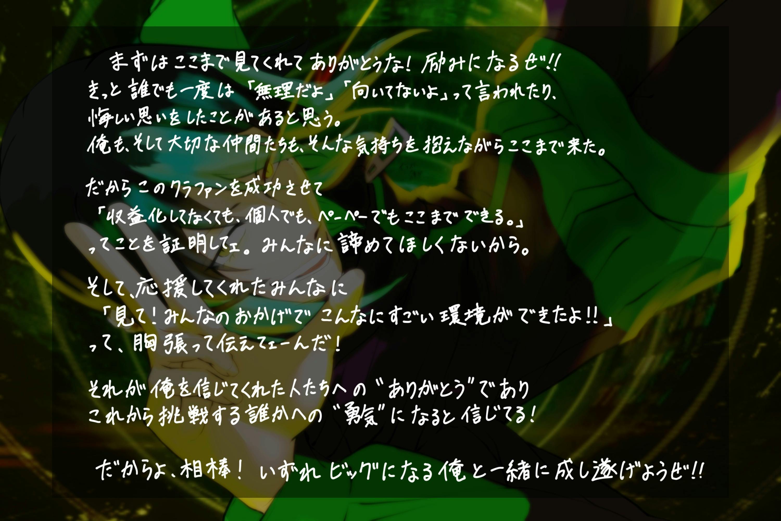 俺はこのクラファン、ゼッテー成功させてぇんだ。