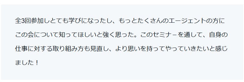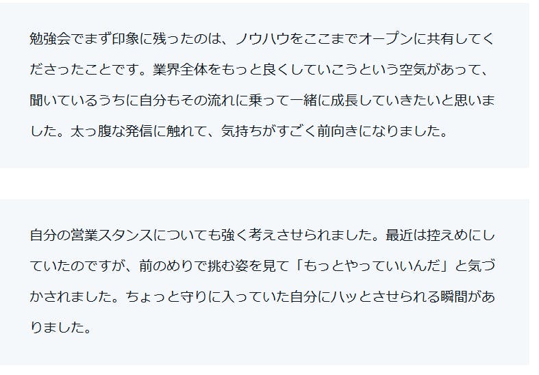 ▼イベントレポートから抜粋した、参加者の方々からの声です