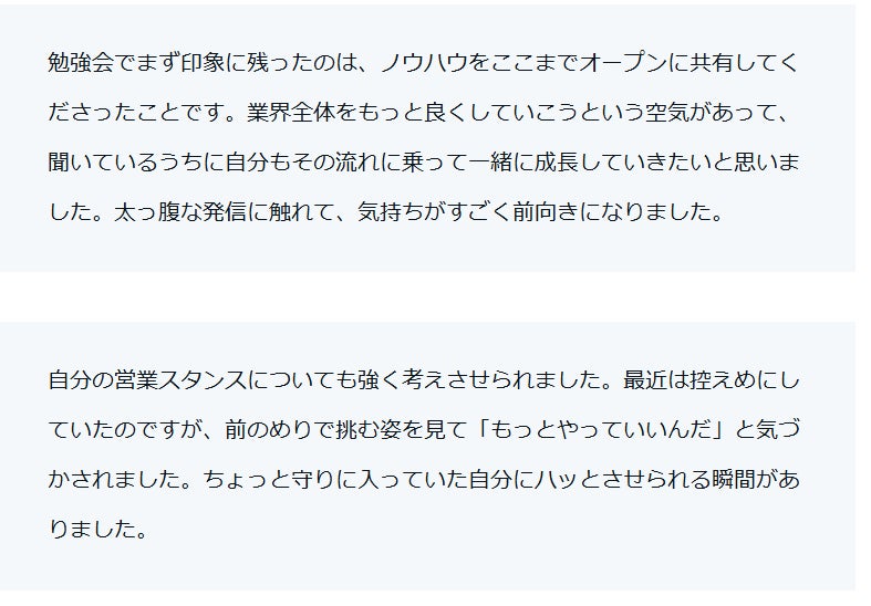 ▼イベントレポートから抜粋した、参加者の方々からの声です