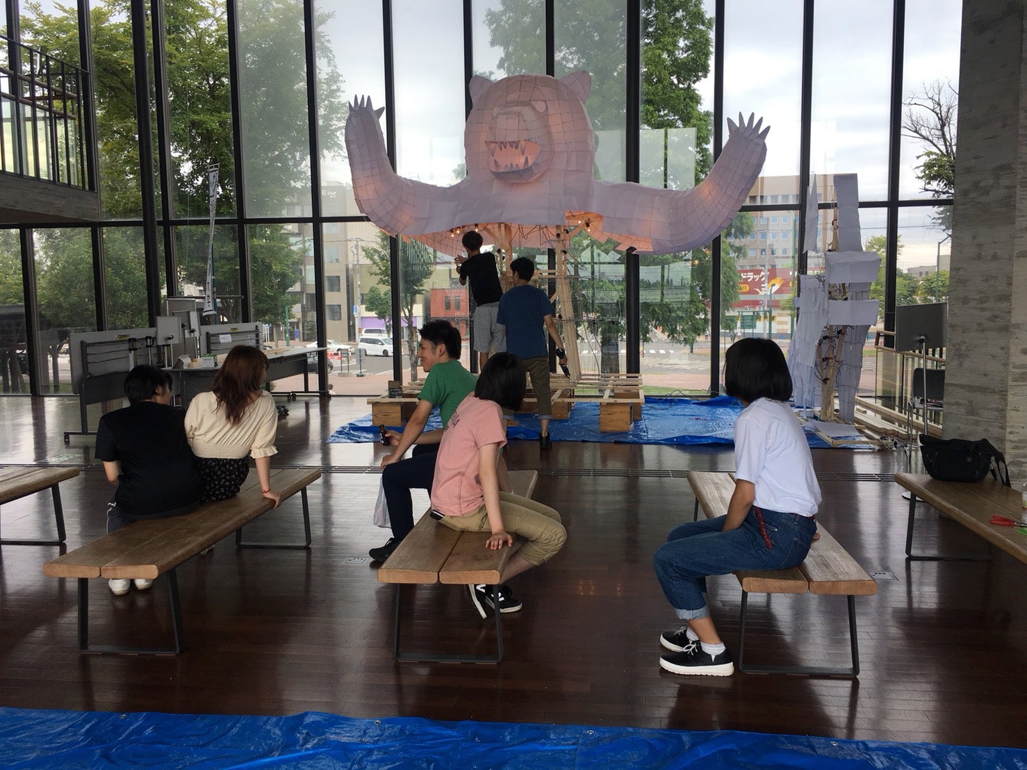 最初は学生同士のつながりを作りたいという自分勝手な思いからの始まりです。プロジェクトを組み立てていく中で、地域との繋がりも大切であるという観点から、JR岩見沢駅の2階で公開制作を行うことになりました。