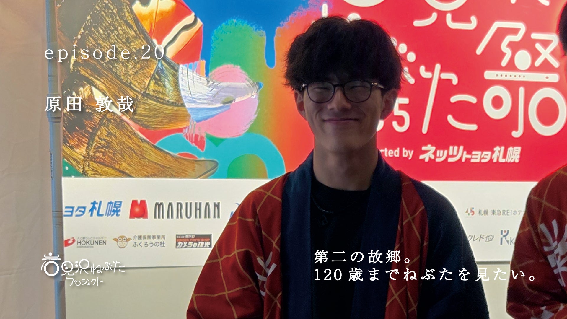 「第二の故郷」。私は岩見沢市にそんな思いをもっています。北海道で生まれ、北海道内で育ちましたが、大学進学を機に初めて岩見沢市に関係するようになり、ねぶたの存在を知りました。高校まで体育系だったことや卒業してすぐだった影響もあり、文化系の活動にはまるで興味がありませんでした。そんな私でもねぶた活動に魅了され「楽しそう!」と思い、二年生という途中からの参加をしました。実行委員のメンバーもあたたかく迎え入れてくれ、とても居心地の良い場所となりました。二年次にねぶた運営を経験したことで、ねぶたをする楽しさを改めて実感できたことから「なんで去年から参加していなかったんだ!」と参加してすぐ後悔しました。そしてこれらを 100 年先までもずっと見続けていたいと思い始めました。そんな実行委員会のみんなは先輩、同学年、後輩関係なくもれなく全員「ねぶたばか」。ねぶたのこととなると一直線に進んでしまうほど熱い思いをもった人たちです。また、ねぶたに関わってくれる地域の方々や OB・OG の方もとても熱い思いをもって私たちに接してくださるほどあたたかく、とても感謝してもしきれません。ねぶたの本場である青森からも運営に携わってくれる方がいたり、当日来てくださる方たちもいたりして、様々な人が入り混じってお祭りをしています。そうして行った昨年の祭りでは体調も天候も万全ではなかったのですが、感動に感動を重ねたのを覚えています。迫力あるねぶた、最大限の音響を用いたステージ発表、沿道の方たちの見える笑顔、具体例をあげだしたら数え切れません。その笑顔を見たことで「頑張ってよかったなあ」や「来年も同じ笑顔やそれ以上が見たい」と思うようになり、現在も活動を続けています。なので、パワーアップした岩見沢ねぶた祭り 2026 になるように全力で取り組みます。来て後悔はさせません。ぜひぜひ見に来てください!感じてください!ねぶたのすばらしさを!原田 敦哉