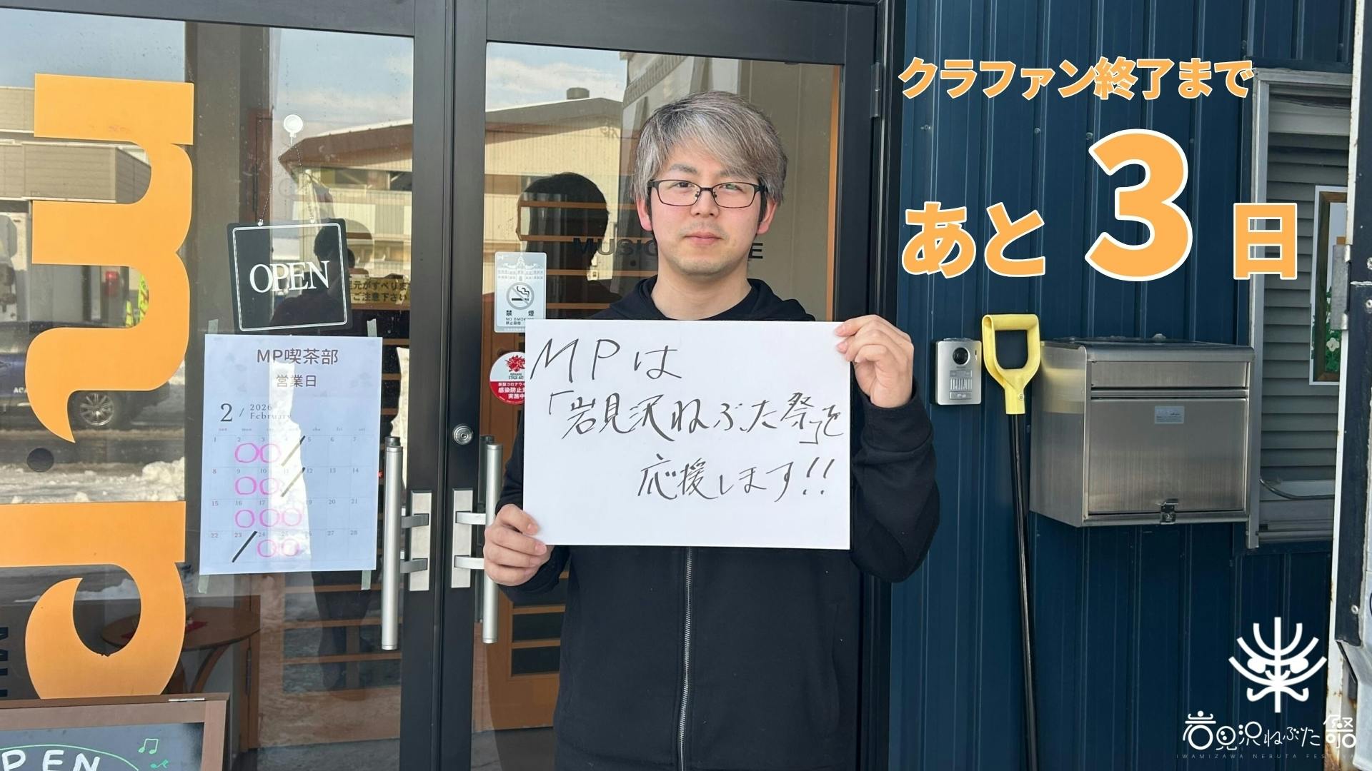 みなさんこんにちは!実行委員3年の鈴木です!クラウドファンディング終了まで残り3日。残り60時間を切りました!!現在 100万円、20%達成しています!!第一目標の100万円突破、本当にありがとうございます!目標の500万円まで残り400万円!毎日たくさんのご支援・応援、ありがとうございます!!本日も引き続き、岩見沢ねぶたプロジェクト実行委員の"岩見沢ねぶた祭へのアツい想い"をご紹介します!第6回目は、実行委員2年生の森田芽吹&川村晃生!!!「『笑顔』と『楽しい』を届けたい!」 森田芽吹「岩見沢の火まつり」 川村晃生地道に突き進む行動力とユーモア溢れるセンスでこの実行委員会を支える事務局芽吹!そして部活に所属しながらも活動的で、地元青森で培った囃子の技術や知識を実行委員に伝承している晃生!二人が揃えば最高の祭りになること間違いなし!!まだまだ実行委員それぞれのアツい想いは続きます!最後までお楽しみに!!!最後まで、ご支援・応援のほどよろしくお願いします!