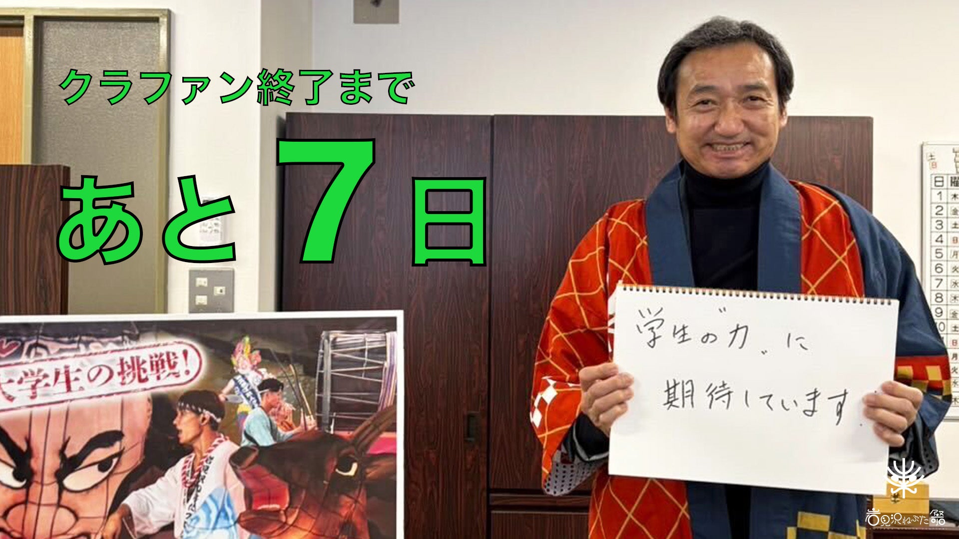 みなさんこんにちは!実行委員3年の鎌田です!クラウドファンディング終了まで残り7日。いよいよ残り1週間となりました!!!現在 74万円達成しています!!目標の500万円まで残り426万円、そして100万円まで残り26万円 !毎日たくさんのご支援・応援、本当にありがとうございます!!本日は以前に引き続き、岩見沢ねぶたプロジェクト実行委員の"岩見沢ねぶた祭へのアツい想い②"をご紹介します!第1回目は、実行委員2年生の植松歩楽&山崎桜花!!!「帰りたくなる街 岩見沢」植松歩楽「このまちを、次の世代へ」山崎桜花大学では主にまちづくりについて研究している2人は、その視点からいつも面白いアイデアをたくさん発案し、岩見沢ねぶたに新しい刺激をもたらしてくれています!!岩見沢ねぶた祭を100年続く祭に作り上げるためには欠かせない存在です!クラファン終了まで実行委員それぞれのアツい想いは続きます!最後までお楽しみに!!!まずは 100万円達成まで残り28万円!最後まで、ご支援・応援のほどよろしくお願いいたします!!