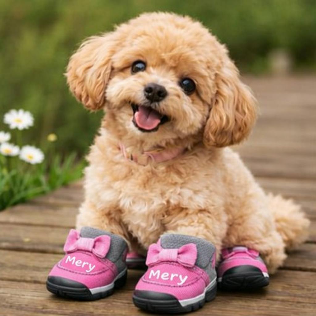 極寒の中や猛暑の中、ペットの足を守るのにお名前を入れたシューズは重宝するはず!!