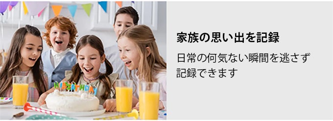 最大128GBのmicroSDカードを使用できるため、長時間の撮影でも容量不足の心配がありません。