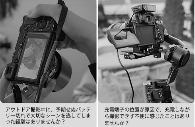 約40分で満充電が可能です。さらに、500回の充放電を繰り返しても最大容量の80%を維持します。最大1時間の連続動画撮影に対応(2.7K/1080P・30FPS)