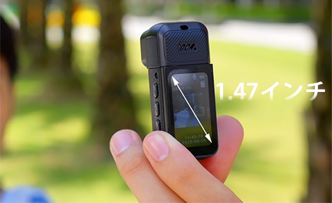 1.47インチのIPSディスプレイを搭載しており、撮影後にその場で映像を確認できます。自撮り時には、画面を見ながら構図や表情を調整できます。