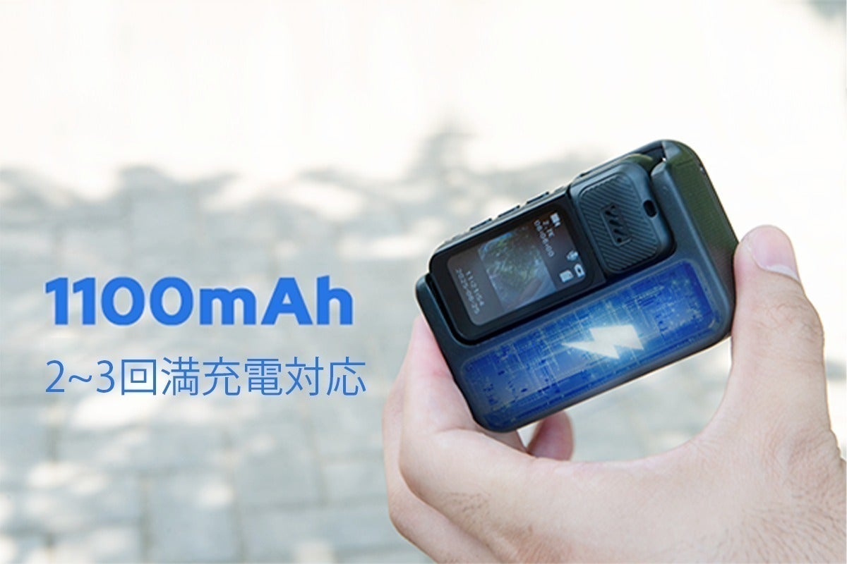 A1:本体には350mAhのバッテリーを内蔵しており、最大約1時間の連続録画が可能です。また、付属の1100mAh充電ドックを併用することで、2〜3回分の追加入力ができ、合計で約3〜4時間使用できます。