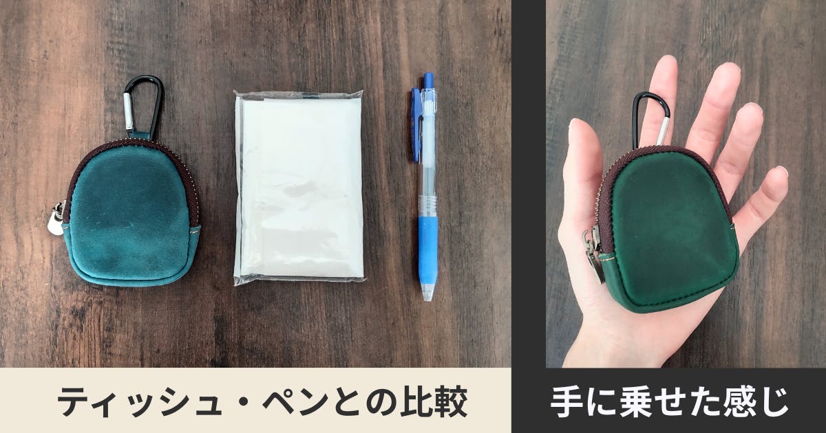 ですが、ミニマムすぎるコインケースでもなく、普通の大きさのポーチでもなく、付け替えしやすく、付けても邪魔にならないギリギリの大きさを追求した結果、このサイズになりました。