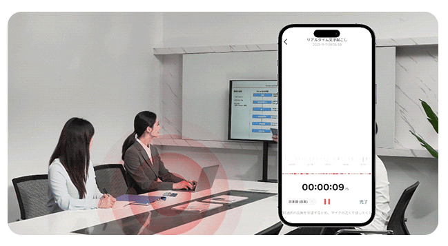 議事録作成に追われる時間も、聞き返し作業のストレスもゼロに。集中したい時は話を聞くことだけに専念できます。