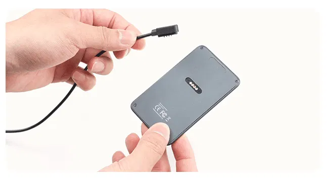 - 名刺サイズ、厚さわずか 2.85mm、重さ 25g。