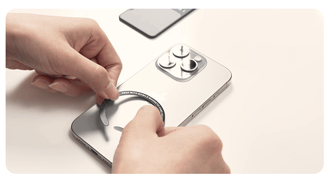 さらに、付属の磁気リングをスマホケースに貼れば、MagSafe非対応でもパチッと吸着。