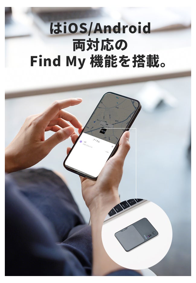 FOLIO AIR はiOS/Android 両対応の Find My 機能を搭載。オフィスやカフェ、外出先でも、もし紛失してもスマホからすぐに位置を確認可能。