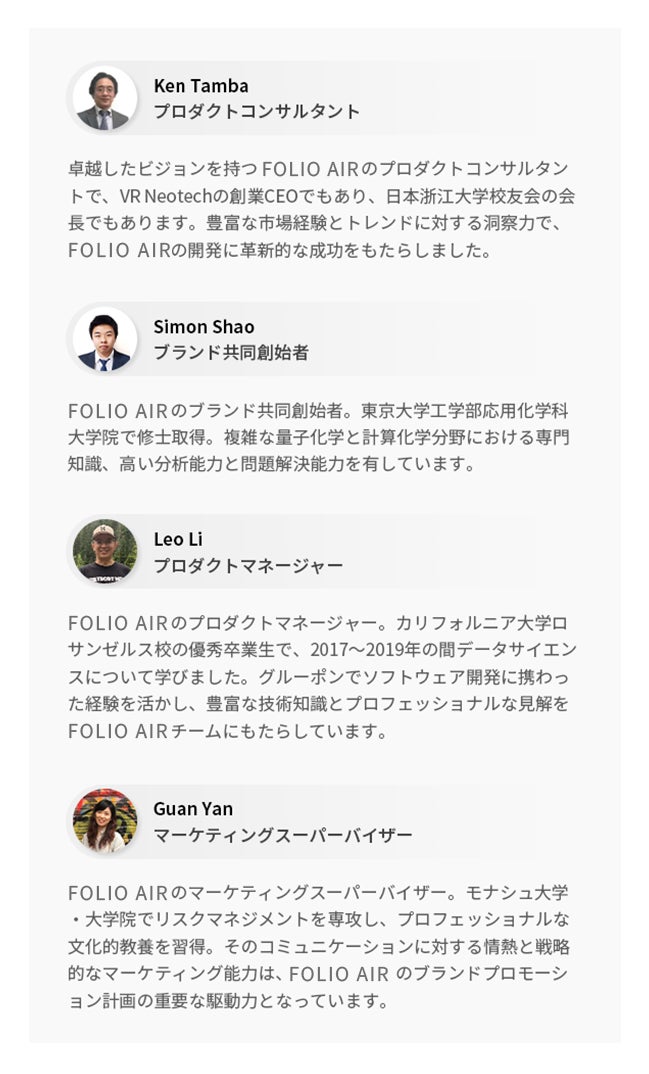 本プロジェクトを企画・開発している FOLIO AIR開発チーム です。