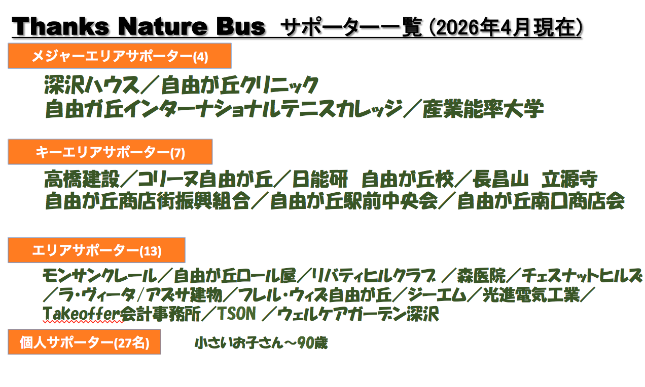 サンクスネイチャーバスがこれからも自由が丘の笑顔を運び続けられますよう応援しています。』
