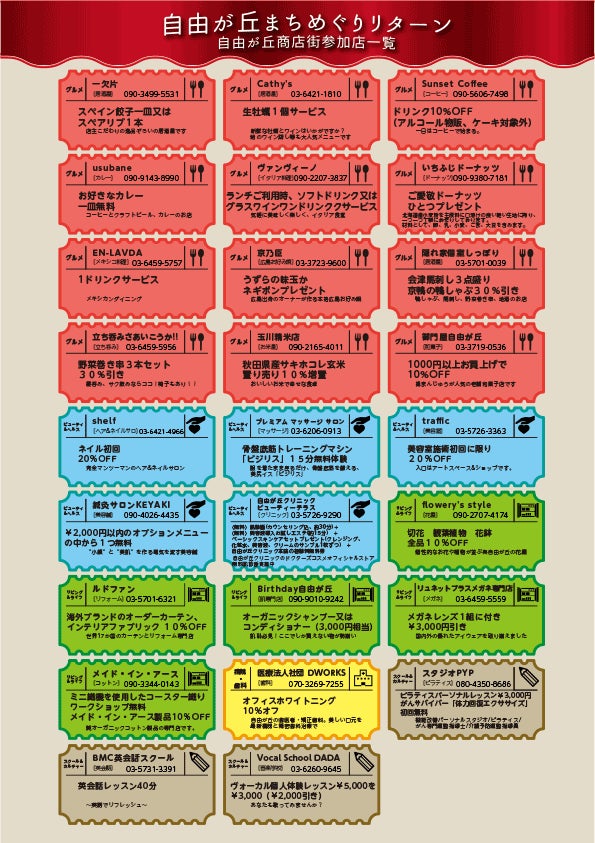 感謝!20日目、自由が丘商店街振興組合協賛の自由が丘まちめぐり_参加店一覧をご覧ください。