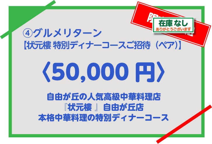 【状元樓 特別ディナーコースご招待(ペア)】 限定:1組